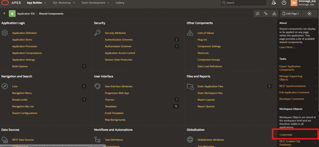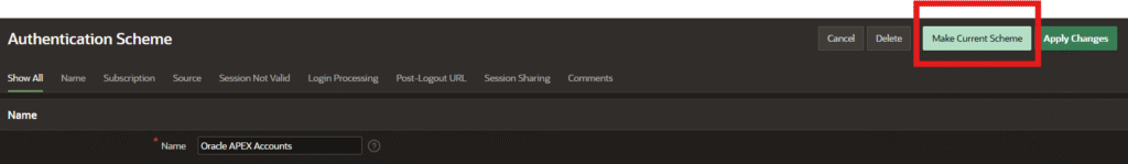 1. In Oracle APEX, go to Shared Components → Authentication Schemes